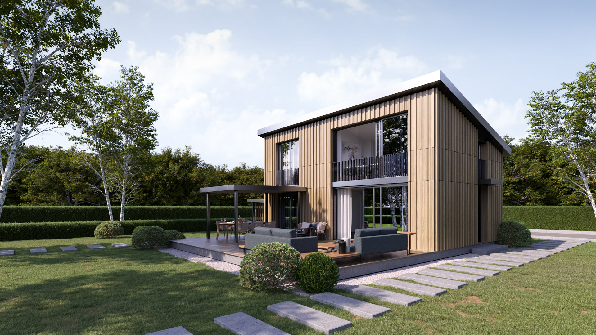 Wir präzisieren die Rahmenbedingungen, entwickeln Typologien für Ferienhäuser und Saunas und bauen Außenflächen sowie Erschließung weiter aus. Wir legen Perspektiven fest und erstellen 3D-Renderings, die Gebäude und Nutzung klar zeigen. Zugänge und Wegeführung machen wir eindeutig nachvollziehbar.