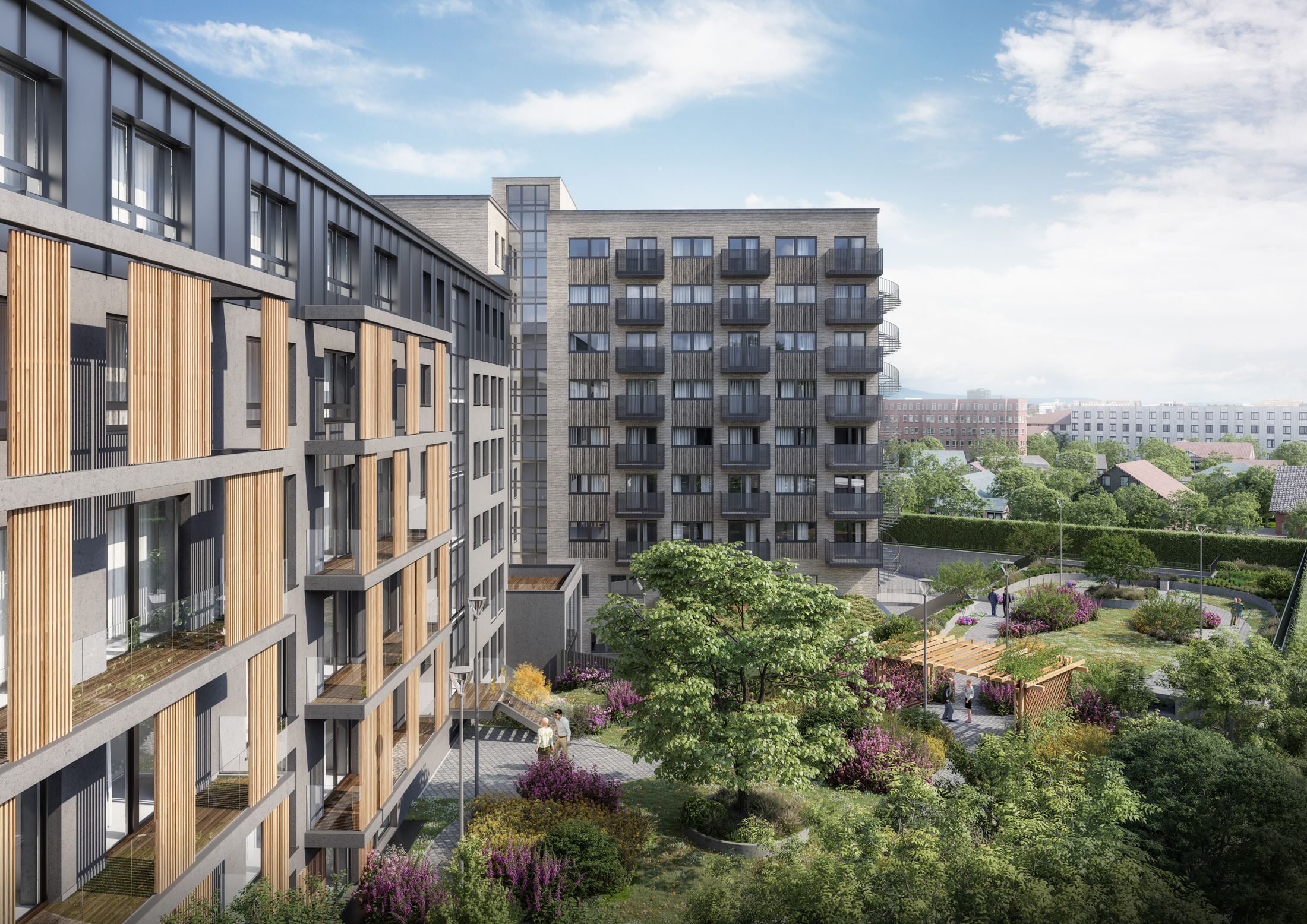 Für den Auftraggeber unterstützt das Fassadenkonzept die Abstimmung mit Stadt und Gemeinde, die Darstellung des Projekts im Vertrieb sowie die Kommunikation des Gesamtkonzepts: CGI-Video und Renderings zeigen das Quartier verständlich, Rückfragen zur Fassade lassen sich einfacher klären und Entscheidungen zur Ausgestaltung der Außenanlagen fallen leichter.