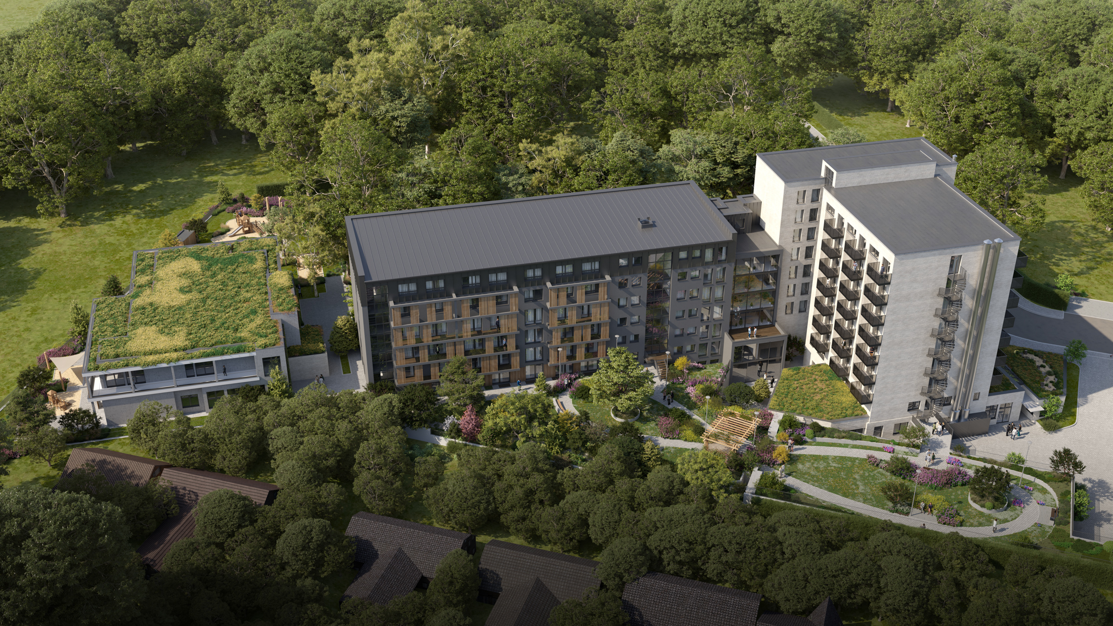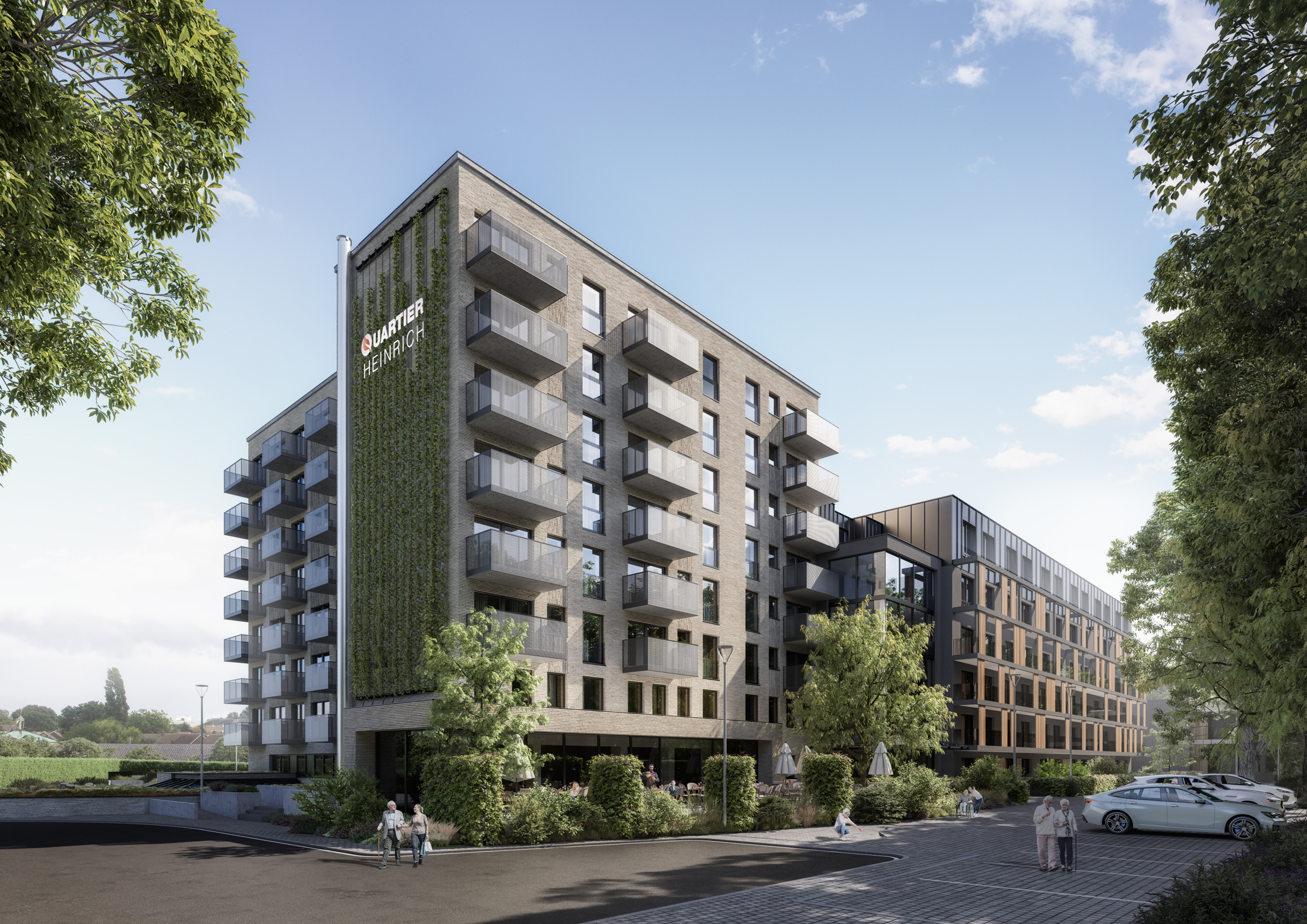Auf dem Basis einer ehemaligen DRK-Senioreneinrichtung entsteht im Düsseldorfer Zooviertel das Wohnquartier „Quartier Heinrich“. In Zusammenarbeit mit dem Architekturbüro entwickeln wir die Fassadengestaltung und visualisieren das Exterieur in realitätsnahen Renderings und einem CGI-Video. Fassadenrhythmus, Materialität und Farbigkeit werden so ausgearbeitet, dass das Quartier als zusammenhängendes, zeitgemäßes Ensemble erkennbar ist.