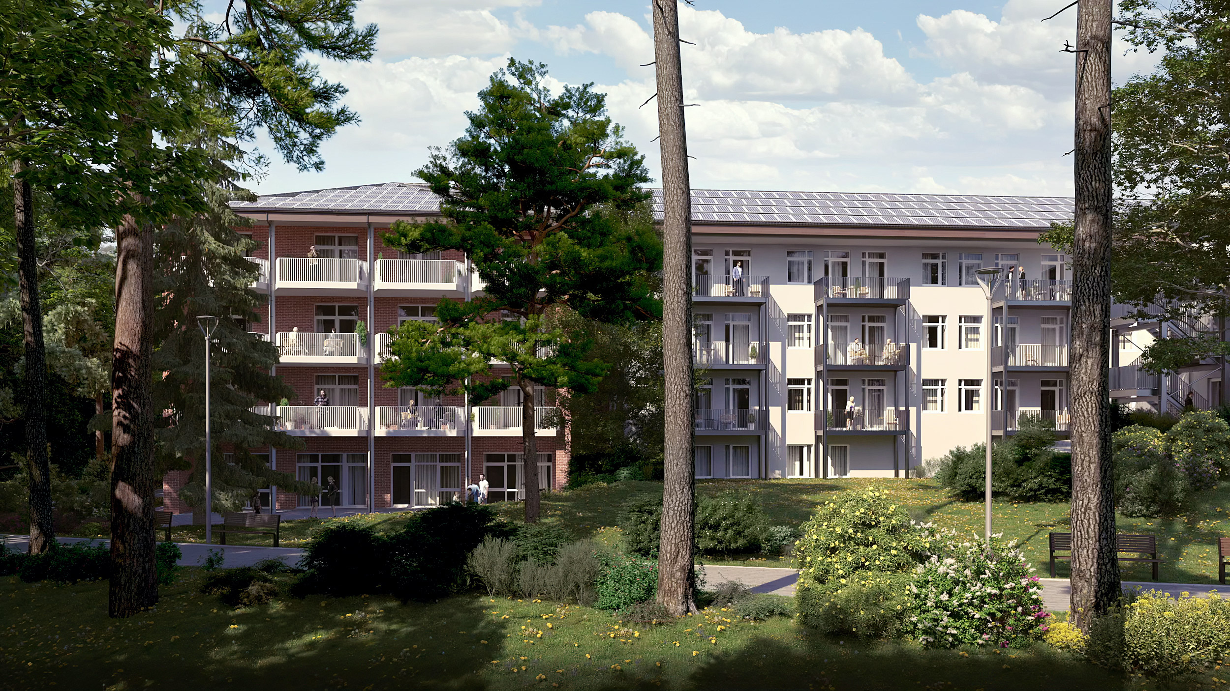 Ein Schwerpunkt liegt auf dem Interior Design für betreutes Wohnen, Gemeinschaftsräume, Patientenzimmer und Gastronomie. Wir entwickeln ein zusammenhängendes Gestaltungskonzept, das Materialien, Farben und Möblierung aufeinander abstimmt und die Anforderungen einer Sozialimmobilie mit hoher Aufenthaltsqualität erfüllt. Ergänzend visualisieren wir Außenansichten und Luftbilder, sodass Gebäudevolumen, Außenflächen und die Einbindung in das Umfeld klar erkennbar sind.