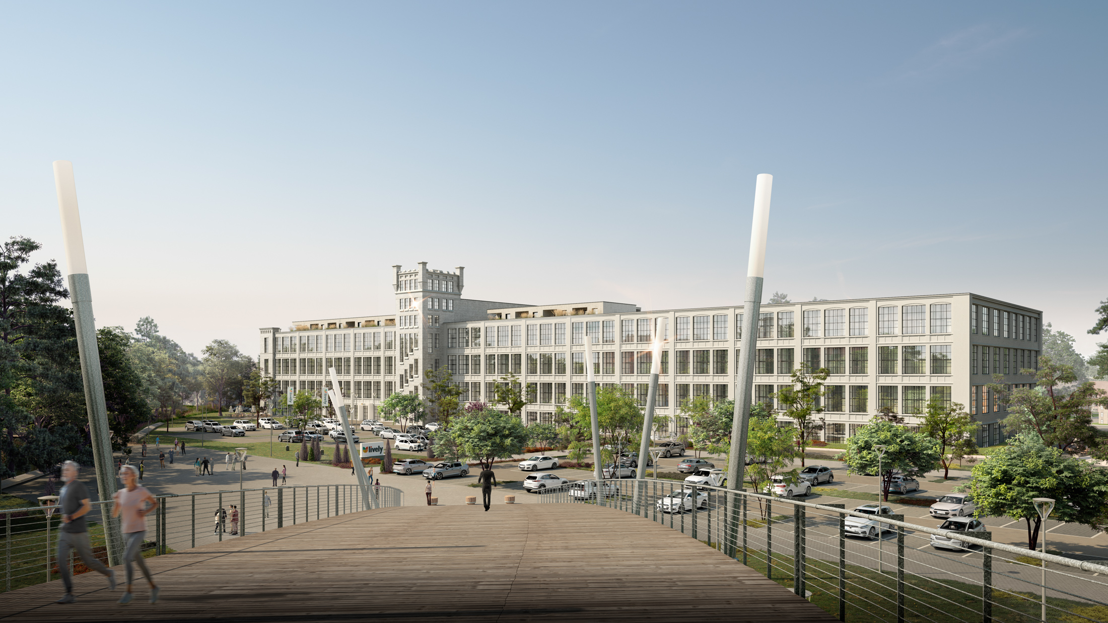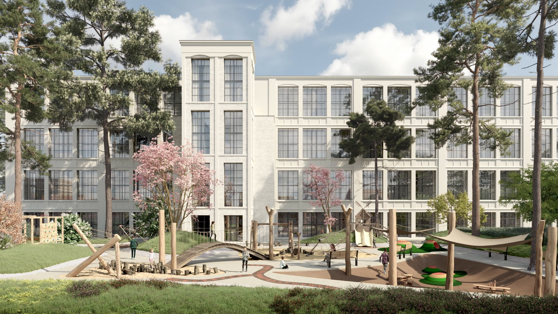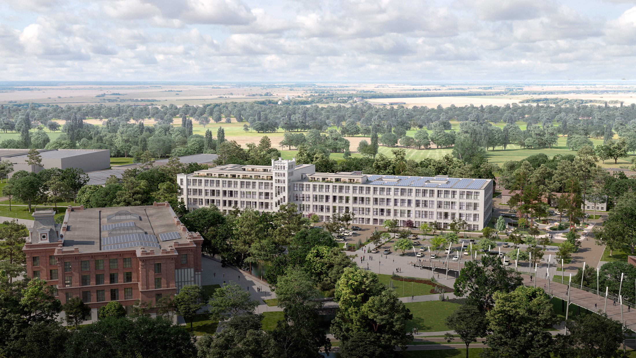 Wir visualisieren das denkmalgeschützte Großprojekt „Weisse Dame“ in Gronau, arbeiten Areal, Außenanlagen, Innenräume und Erschließung aus und zeigen Gebäude, Freiräume und Umfeld in Renderings und CGI-Video.
